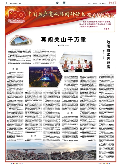 莫道前路多险阻,再闯关山千万重。回望中国共产党百年奋斗历程,从中国共产党人找到马克思列宁主义,并坚持把马克思列宁主义同中国实际相结合那一天起,解放思想、实事求是、走自己的路,就成为中国共产党百折不挠、坚持不懈探索真理的活力之源。40多年来,解放思想与改革开放相互激荡,鼓起“闯”的勇气、释放“创”的活力、激发“拼”的劲头、保持“实”的干劲——改革开放成为中国共产党的一次伟大觉醒,中国人民和中华民族发展史上一次伟大革命,改革开放精神也在中华大地上生根发芽、茁壮成长,枝繁叶茂、硕果累累。
