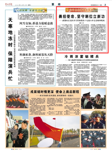 “学习贯彻全会精神,需要各级不断从党的百年奋斗历程中汲取智慧和力量,进一步提高政治能力、练强履职本领,更好履行新时代使命任务。”该支队支队长冯印介绍,党的十九届六中全会公报和《中共中央关于党的百年奋斗重大成就和历史经验的决议》发布后,他们采取“把握重点学、区分层次学、联系实际学”的方法,将课堂设置在战位、延伸至演训场,组织官兵深入学习领悟,以上率下推动全会精神进基层分队、进官兵头脑。
