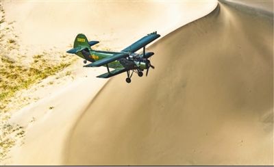 执行飞播任务的飞行员驾驶飞机飞越沙丘。刘 畅摄(人民视觉)