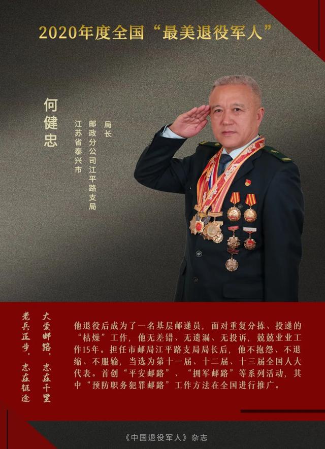 何健忠 男,汉族,中共党员,1959年出生,1978年入伍,1982年退役,江苏省泰兴市江平路邮政支局局长