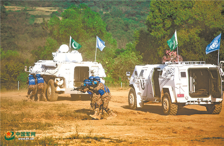 9月6日至15日,以“多国维和部队联合行动”为课题的“共同命运-2021”国际维和实兵演习,在陆军确山某训练基地举行。来自中国、蒙古国、巴基斯坦、泰国等国的1000余名官兵按照联合国维和标准,进行了临时行动基地建设、警戒巡逻、武装护卫、保护平民、应对暴恐袭击等课目演练。