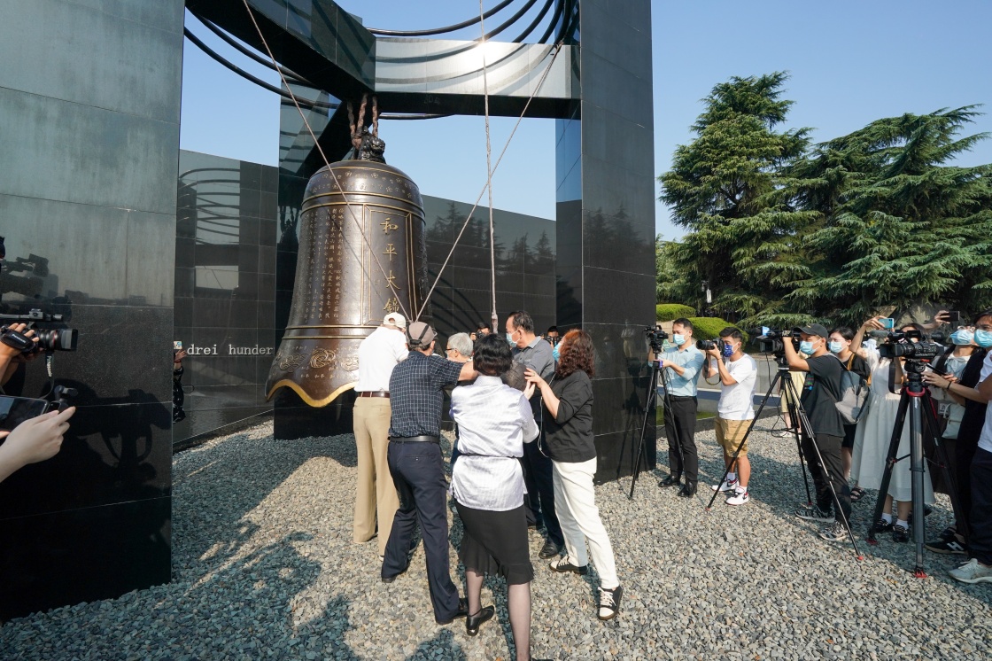 9月18日,南京大屠杀幸存者后代代表在侵华日军南京大屠杀遇难同胞纪念馆撞响和平大钟。