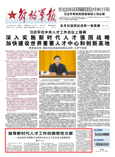 中央人才工作会议9月27日至28日在北京召开,习主席出席会议并发表重要讲话。习主席的重要讲话,从党和国家事业发展全局的高度,全面回顾了党的十八大以来人才工作取得的历史性成就、发生的历史性变革,深入分析了人才工作面临的新形势新任务新挑战,科学回答了新时代人才工作的一系列重大理论和实践问题,明确了指导思想、战略目标、重点任务、政策举措,指明了前进方向,提供了根本遵循,具有很强的政治性、思想性、理论性,是指导新时代人才工作的纲领性文献。