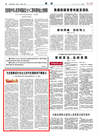 征途漫漫,惟有奋斗。回首过去,党和人民百年奋斗,书写了中华民族几千年历史上最恢宏的史诗。站在新的历史起点上,让我们更加紧密地团结在以习近平同志为核心的党中央周围,永远保持慎终如始、戒骄戒躁的清醒头脑,永远保持不畏艰险、锐意进取的奋斗韧劲,确保“十四五”开好局、起好步,在全面建设社会主义现代化国家新征程上奋勇争先,迎着中华民族伟大复兴的光明前景阔步前行!