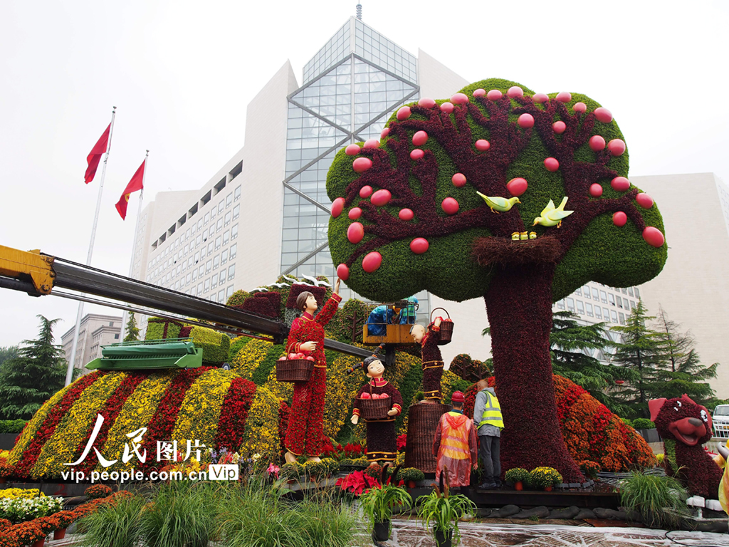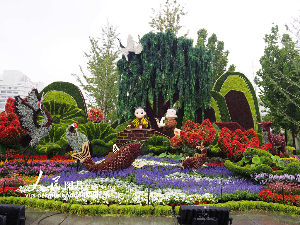 花坛顶高8.5米,以秋季的丰收景象为主景,展现出产业兴旺、生态宜居、乡风文明、治理有效、生活富裕的中国特色社会主义乡村振兴新篇章。