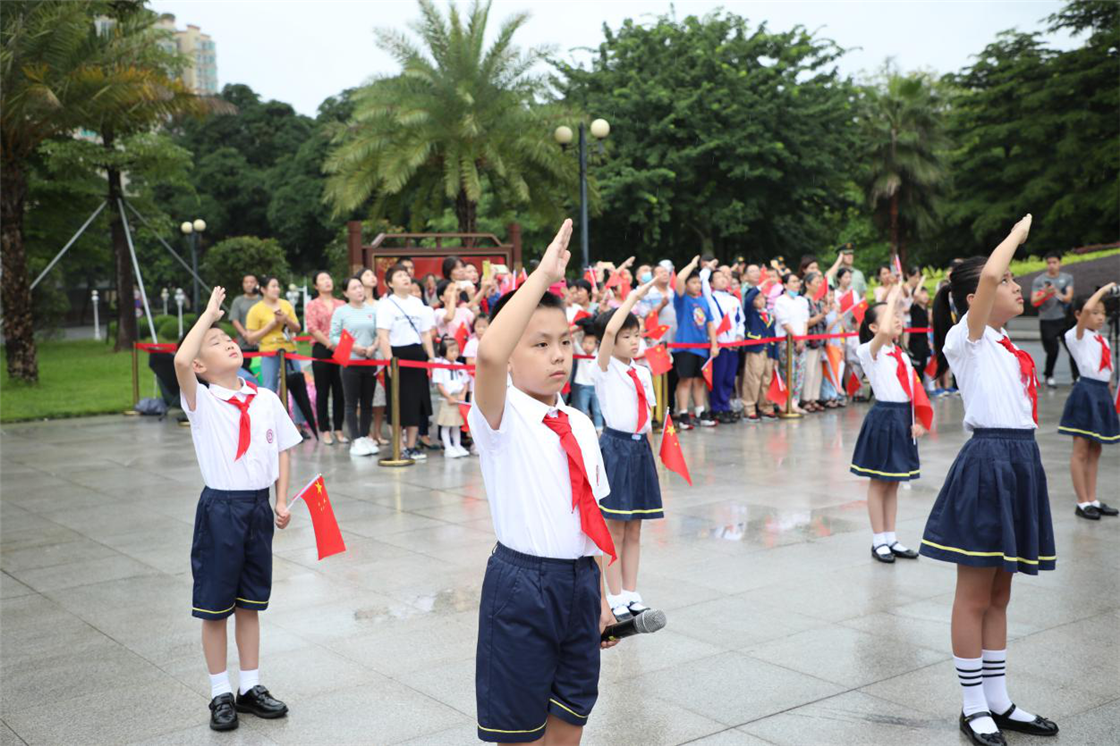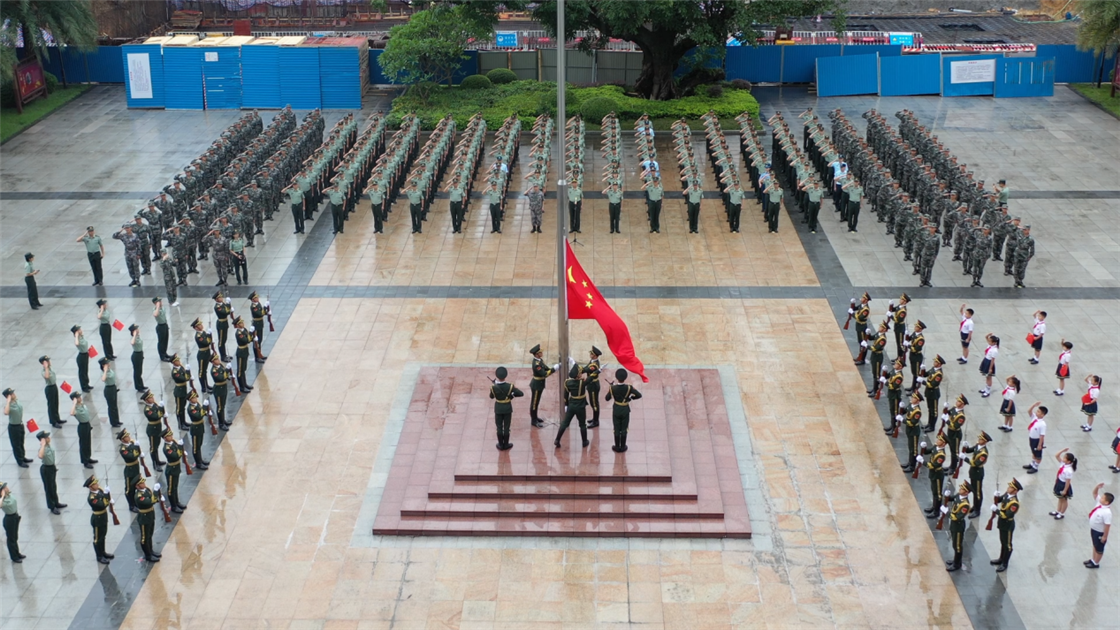 仪式活动以“五星红旗迎风飘扬”为主题,邀请来自广州市越秀区先烈中路小学的12名小学生参加升国旗仪式,并与直属单位官兵共同朗诵诗歌《飘扬》。歌颂为新中国成立付出献血和生命的革命先辈;礼赞迈向民族复兴、强军兴军的伟大时代;抒发热爱美好生活、热爱伟大祖国的豪迈情怀。