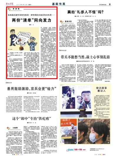 相争不下,官兵的议论越来越多,很快引起了旅党委一班人的注意。他们发现,类似的情况并不鲜见,“事无不报”在部分基层单位似乎已成一种习惯。经进一步了解,他们感到,出现这一现象的根本原因,竟是去年就开始推行的一系列帮建措施。