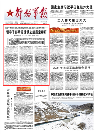 “领导干部在上面要求人、在后面推动人,都不如在前面带动人管用。”火箭军政治工作部领导介绍,组织领导干部带头上好“大课”,将作为火箭军部队贯彻落实全军思想政治教育工作会议精神的常态做法、长效机制,持续开展下去。