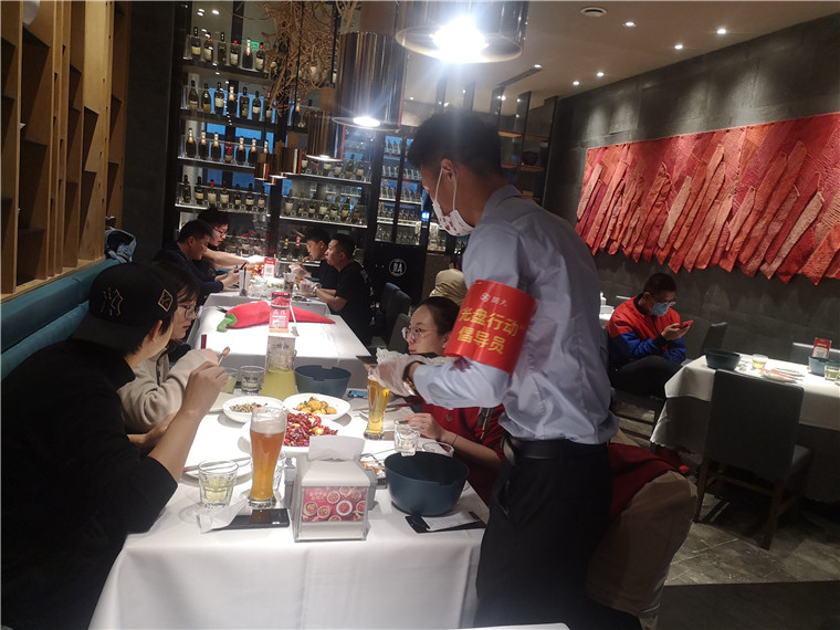 “去年我们推出了小份的水煮鱼、香辣美容蹄、馋嘴蛙仔、鸡蛋裹馒头片和香辣河蟹等,由于来饭店就餐的人一般2至3位顾客较多,小份菜销售已经占到了30%左右。”店长薛丽娟介绍,为了杜绝餐饮浪费,饭馆可谓“层层把关”,除了一旁的点餐员,戴着袖章的两名监督员也会来回巡视督导,劝说适量点餐和餐后剩余打包。