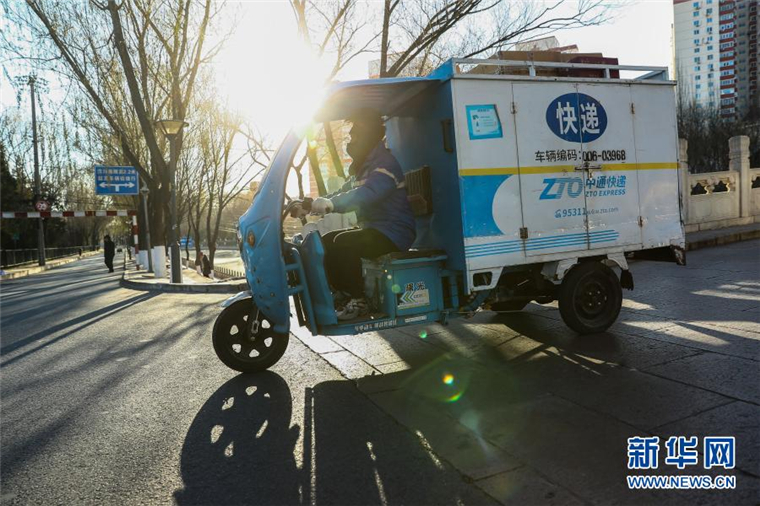 快递员“紧张哥”李杰在北京运送快递的路上(2020年12月16日摄)。新华社记者 张玉薇 摄