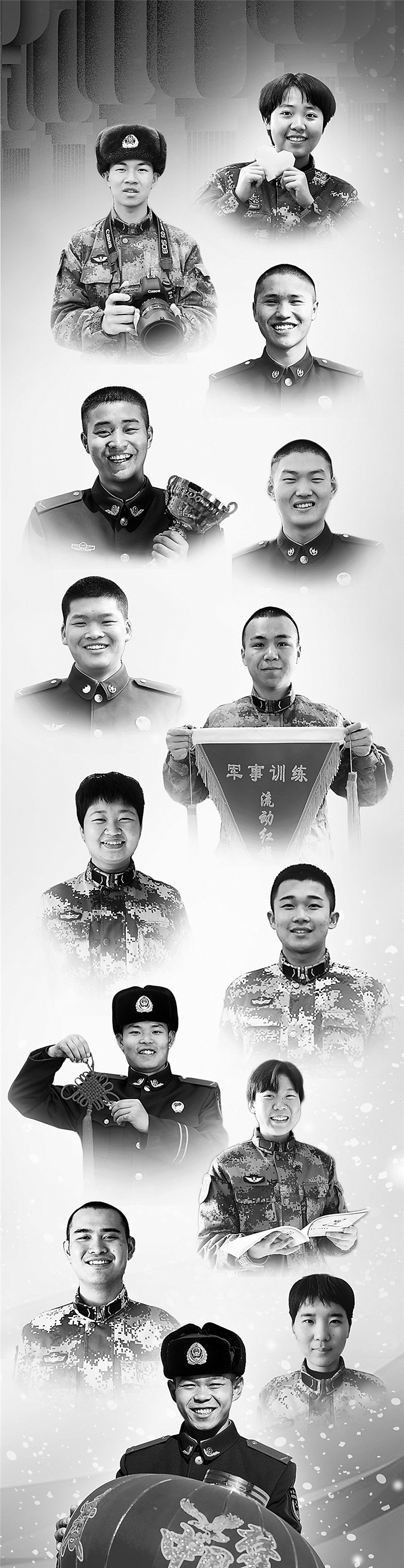 (由陆军第71集团军某旅戴永洋,北部战区陆军某训练基地慕佩洲、王聪、龚荣平,92426部队崔旭,91033部队张朝,武警山西总队龚伟、景旭东、成晓惠、袁浩翔等推荐并提供照片;标题为编者所加;题图合成:扈硕)