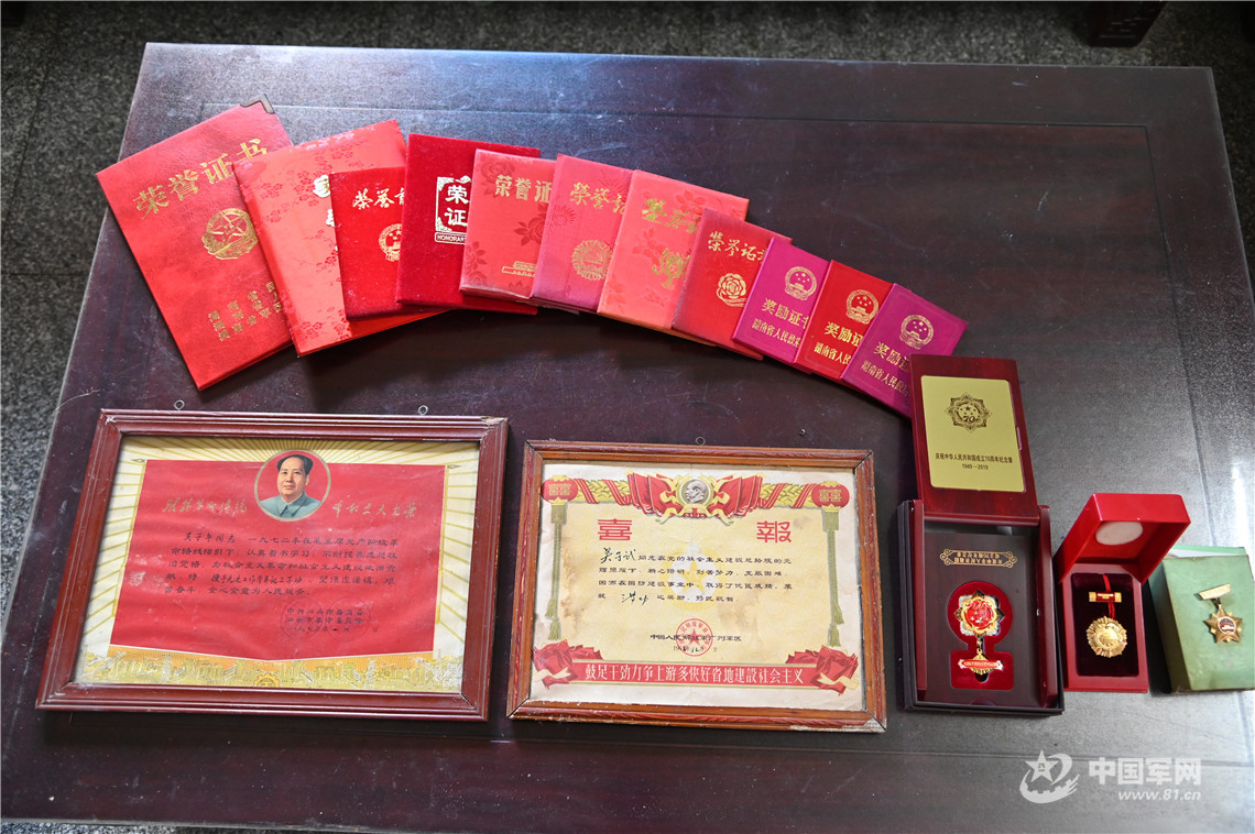 吴子午的奖状、奖章、荣誉证书。李珂 摄