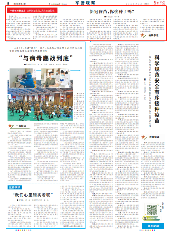 “接种疫苗,我们心里踏实着呢”“作为一线部队,我们已率先接种”……电话那头,来自部队基层一线的战友们这样对记者说。