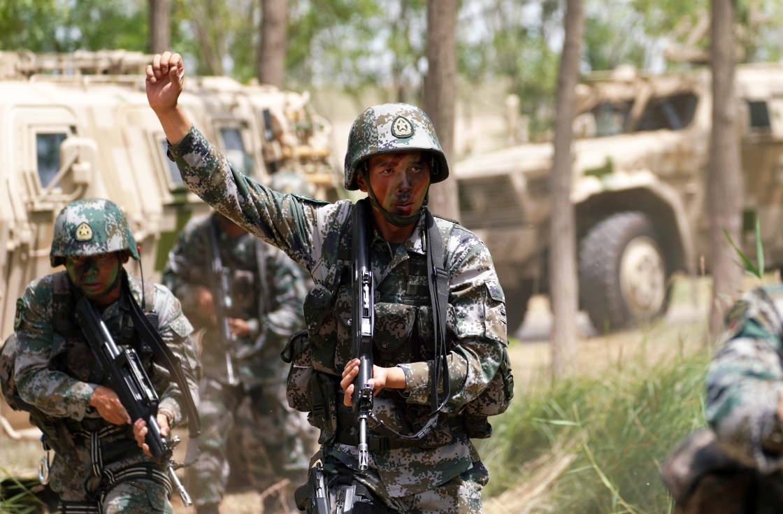 陆军第76集团军某特战旅特战营营长刘近带领特战小队进行突击清剿行动(7月14日摄)。新华社记者张永进摄