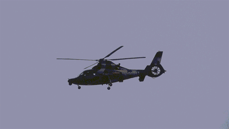 说时迟,那时快,只听一阵引擎轰鸣声呼啸而过,一架武装直升机俯冲而下,导弹直射目标阵地。