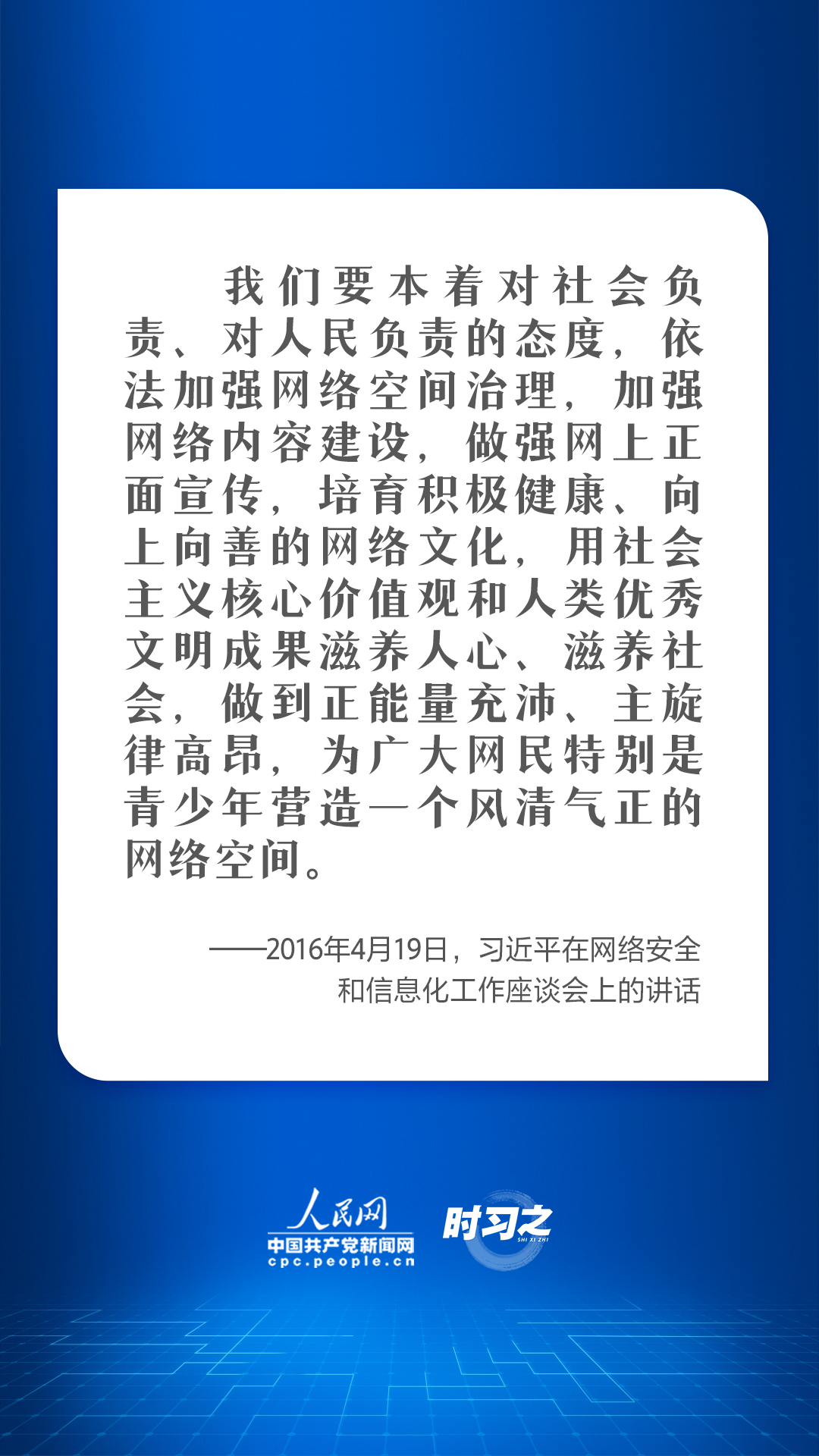“网络空间是亿万民众共同的精神家园。网络空间天朗气清、生态良好,符合人民利益。网络空间乌烟瘴气、生态恶化,不符合人民利益。”一直以来,习近平总书记始终高度关注网络强国建设,并提出要坚持发展和治理相统一、网上和网下相融合,广泛汇聚向上向善力量。