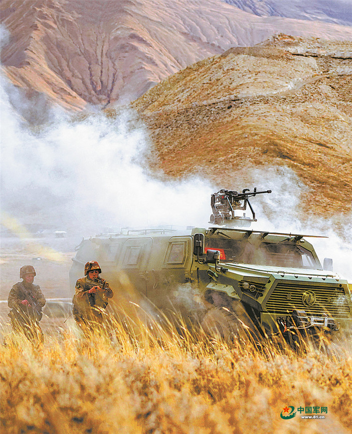 迢迢天路,一辆辆战车时而快速机动,时而疏散隐蔽。到达预定地域后,官兵们迅速抢占阵地,紧张投入战斗准备。侦察分队放飞无人机实施战场侦察,将信息实时传至指挥所。指挥员分析研判“敌”情后,下令使用某型速射迫击炮对目标实施压制。随即,一枚枚炮弹呼啸出膛,目标区域硝烟弥漫、火光冲天。