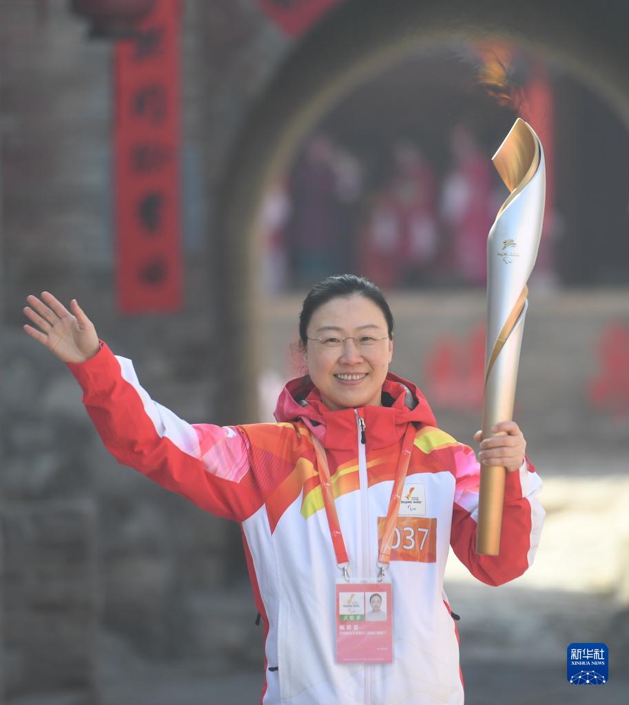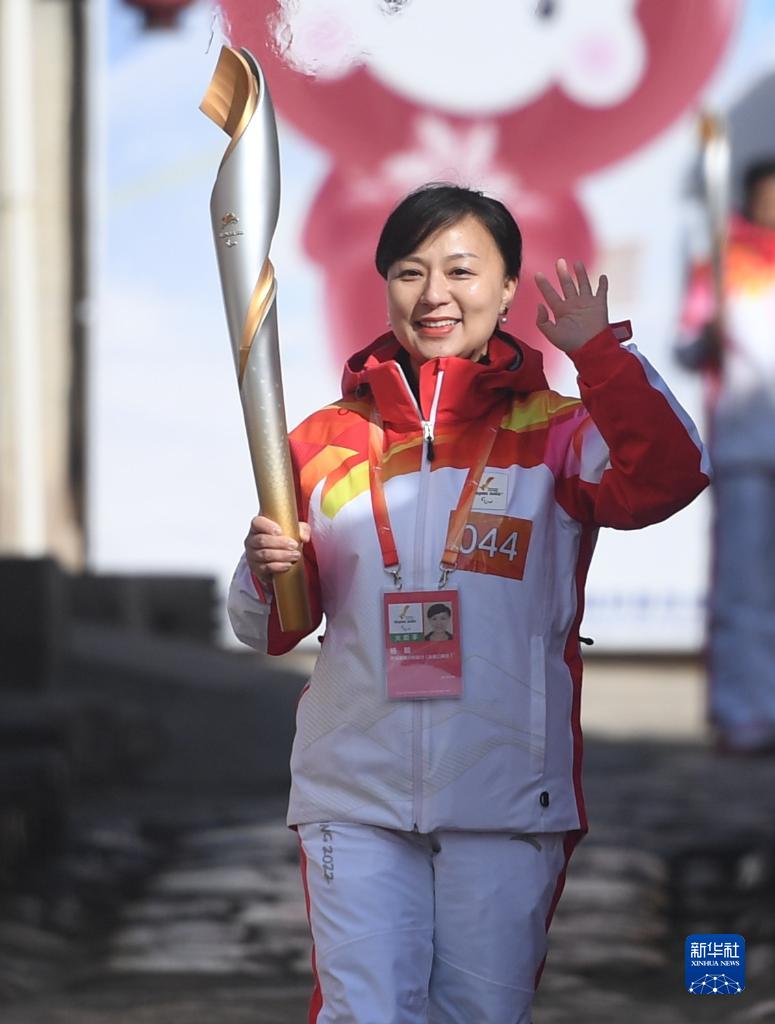 3月3日,火炬手鲍莉芸在传递火炬。新华社记者 曹国厂 摄