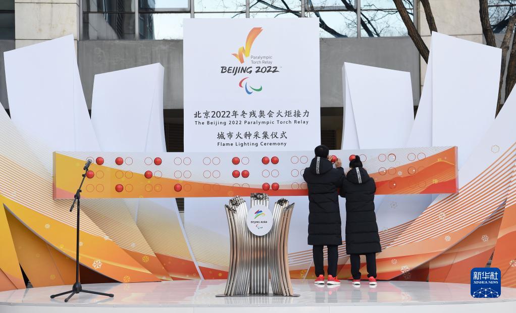3月2日,“希望之火”的火种被引入火种灯。当日,北京2022年冬残奥会火种采集仪式在中国盲文图书馆举行,采集“希望之火”。新华社记者陶希夷摄