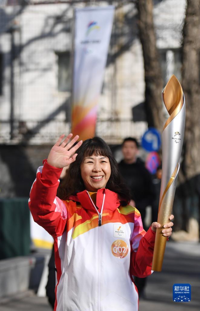 3月2日,第二棒火炬手周述娜在城市火种火炬传递中。新华社记者陶希夷摄