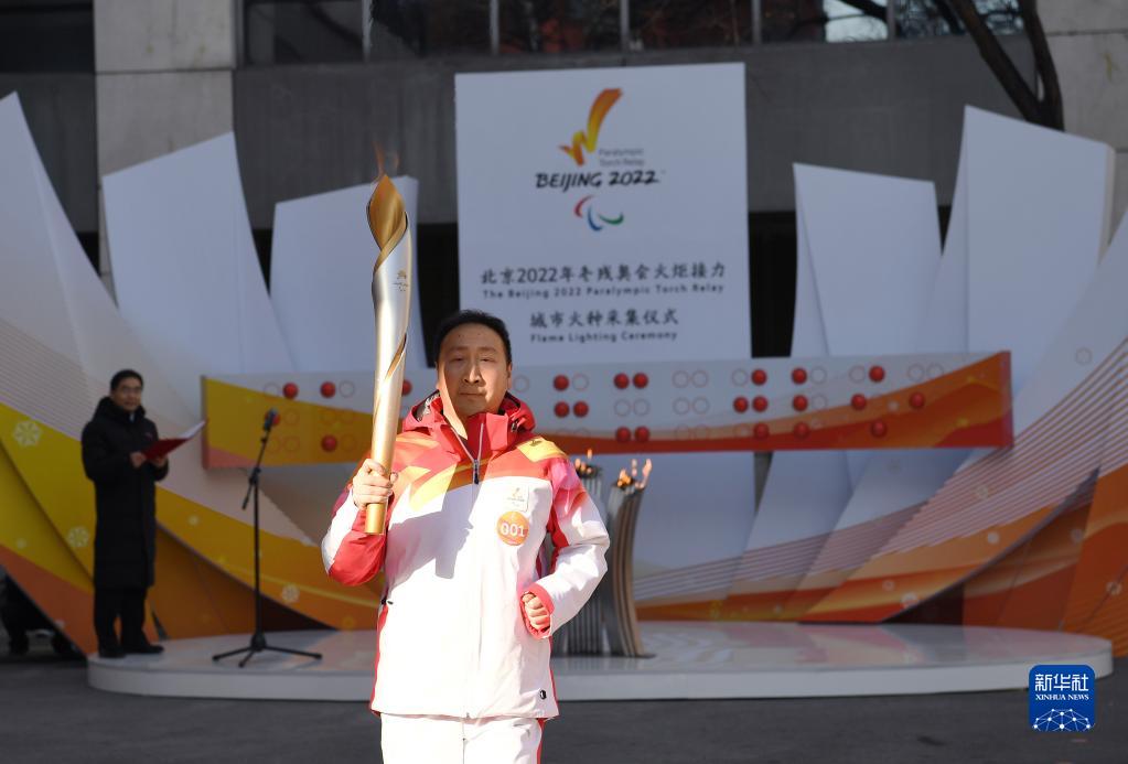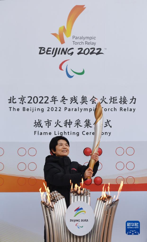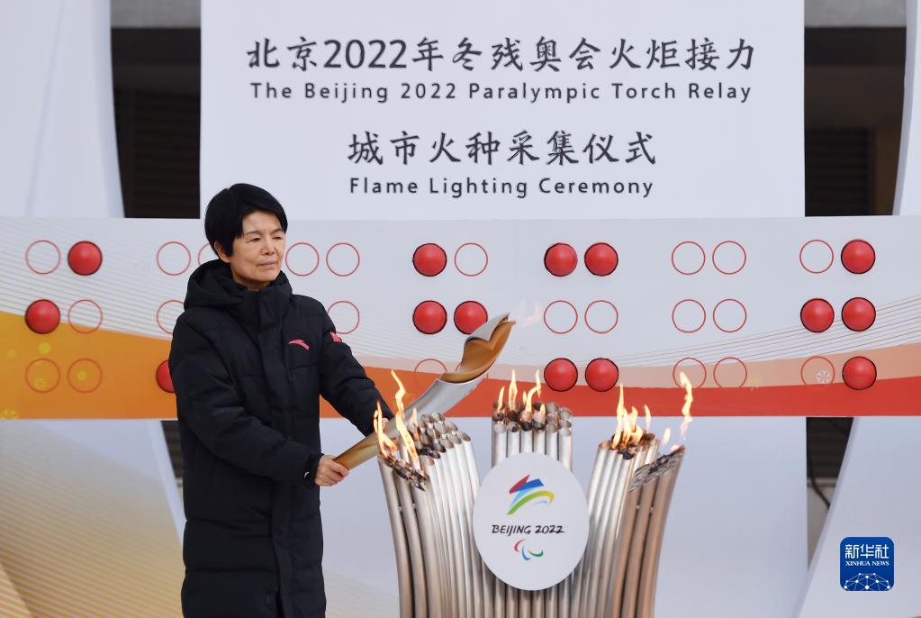 3月2日,中国残联副理事长王梅梅点燃火种火炬。新华社记者陶希夷摄