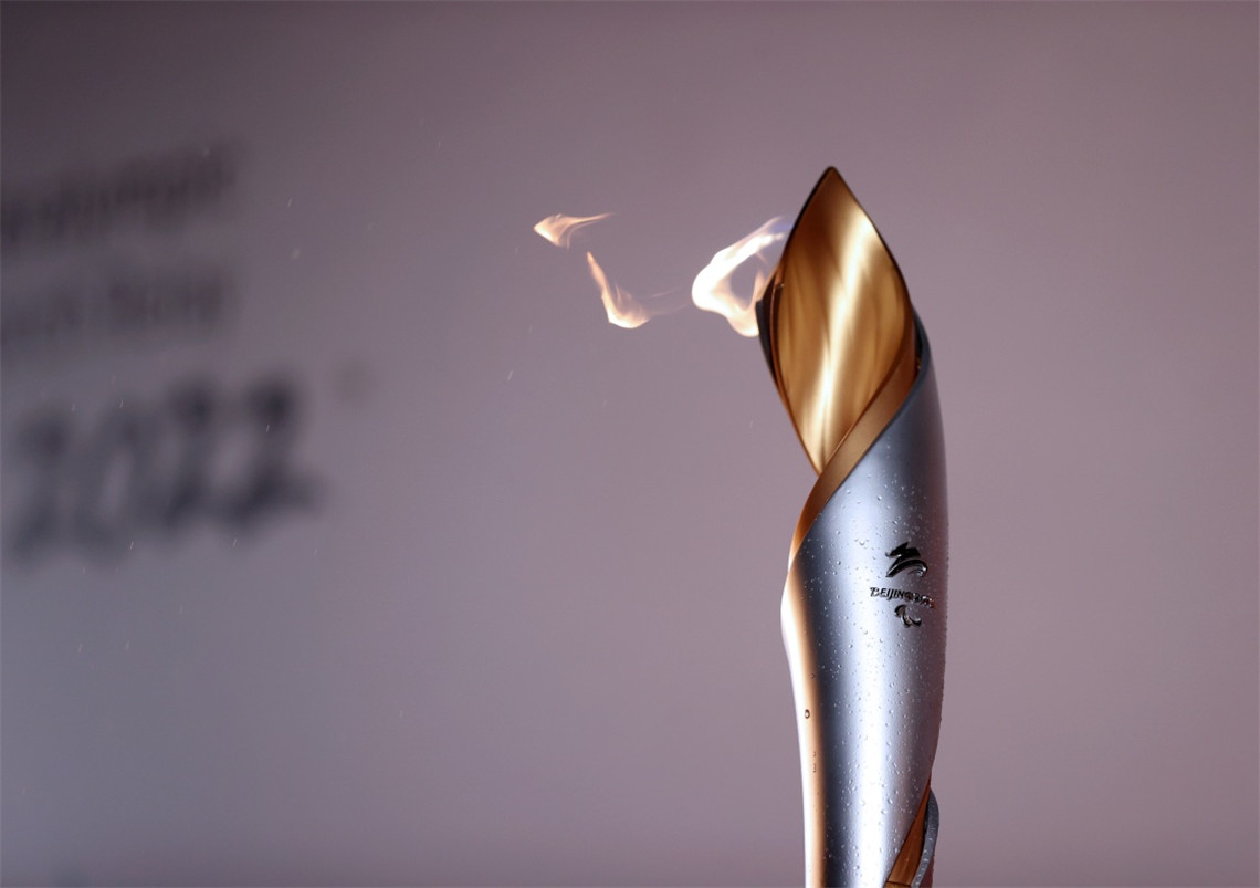 这是2月28日在火种采集仪式上拍摄的北京冬残奥会火炬。新华社记者 李颖 摄