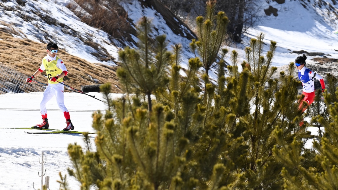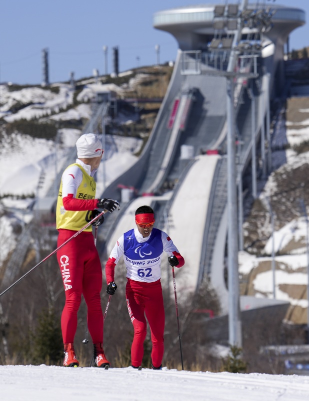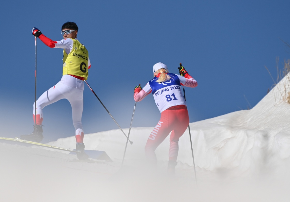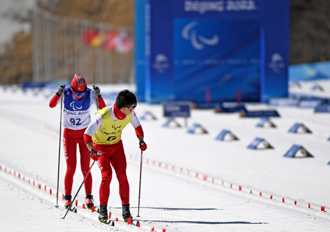 北京2022年冬残奥会赛场国家冬季两项中心的雪道蜿蜒起伏于山谷间。在视障组比赛中,总能见到视障选手和引导员同牵一根雪杖的场景,也时常听到不同语言的提示声、发力的喘息声,这些昂扬向上的姿态令人动容。