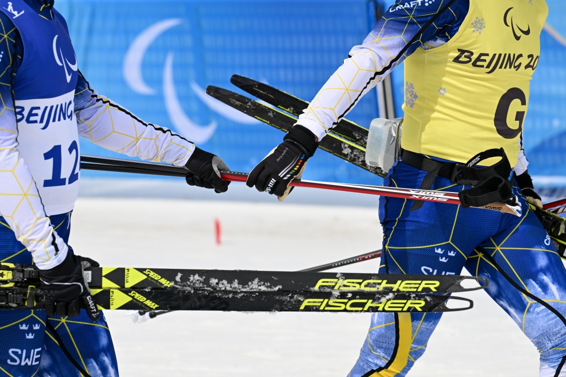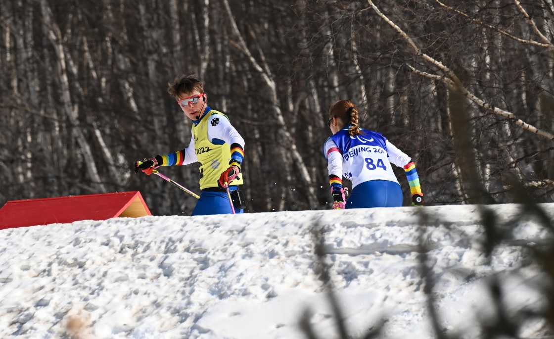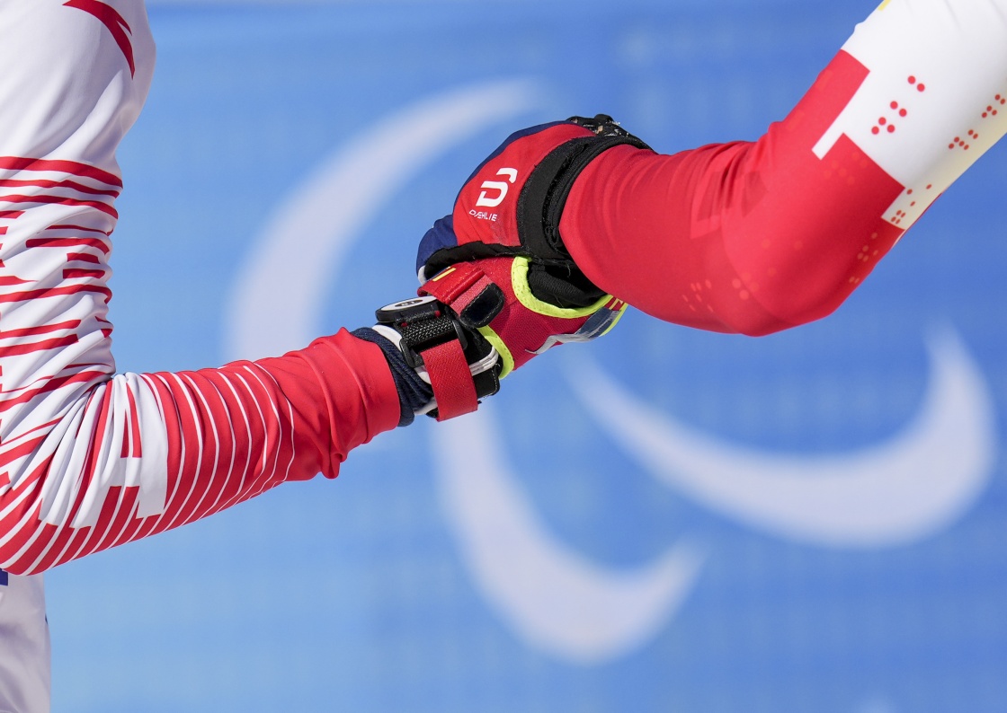 视障运动员参与残奥越野滑雪、残奥冬季和残奥高山滑雪比赛时,须在引导员的帮助下,合力完成。他们共同追逐梦想、挑战自我,分享快乐和荣誉。