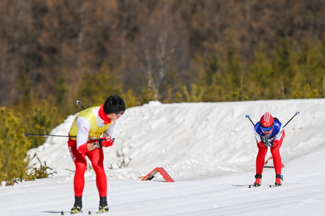 引导员滑行在前,随时关注身后运动员的状态,他们通过扩音器或对讲机发声,提示运动员掌握方向和节奏;有时,为顺利滑过特殊赛段,引导员会适时向后伸出雪杖,视障选手则默契地握紧雪杖,两人按着相近的频率,向着终点前进。