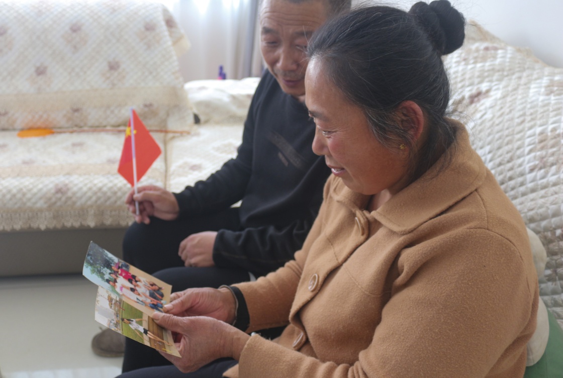 3月8日,王跃的父母在家中向来访者展示她小时候的生活照片。新华社发(于猛 摄)