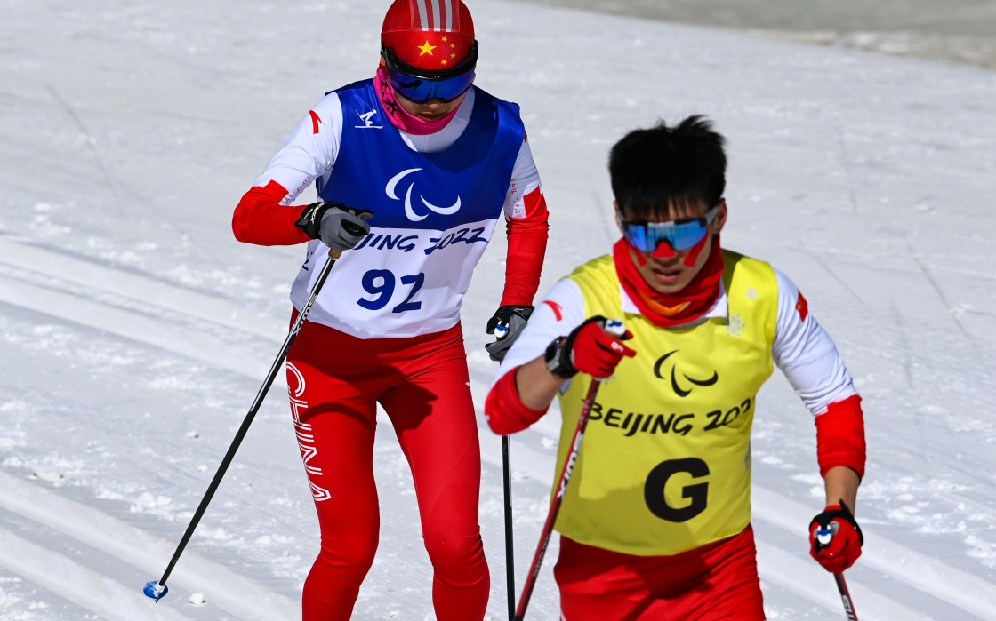 在北京2022年冬残奥会越野滑雪赛场上,活跃着视力障碍运动员的身影。他们虽然不能看清脚下的雪道,却能奋力向前,向心中最清晰的目标冲刺。
