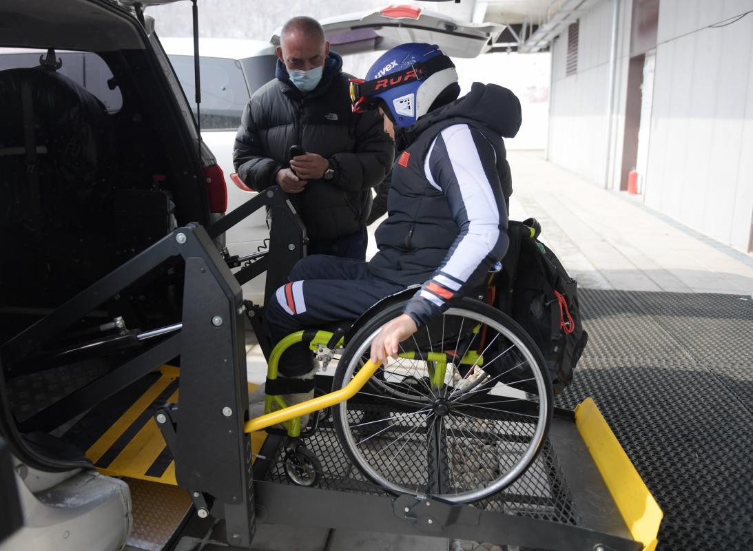 为保障残疾人运动员活动便利,北京冬奥会和冬残奥会延庆赛区国家高山滑雪中心为残疾人运动员提供专用车辆(2021年2月23日)。新华社记者 张晨霖 摄