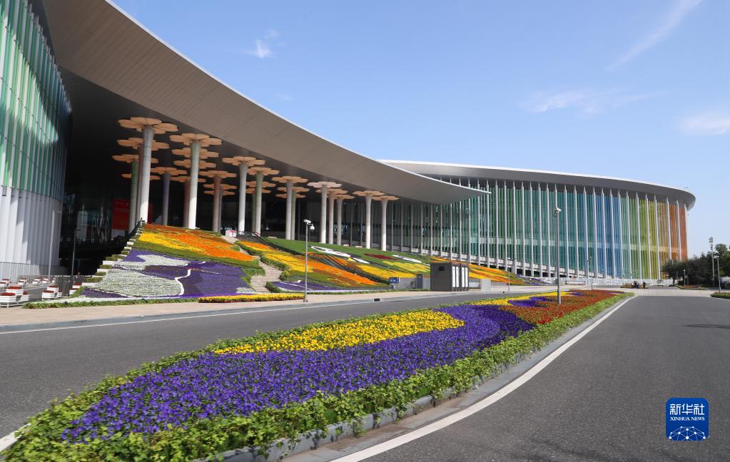 近日,位于上海青浦的国家会展中心(上海)场馆外部进博会主题装饰工程进入收尾阶段,包括南广场在内的四个出入口都已装饰一新,迎接即将开幕的第五届中国国际进口博览会。