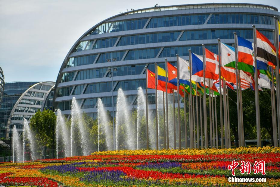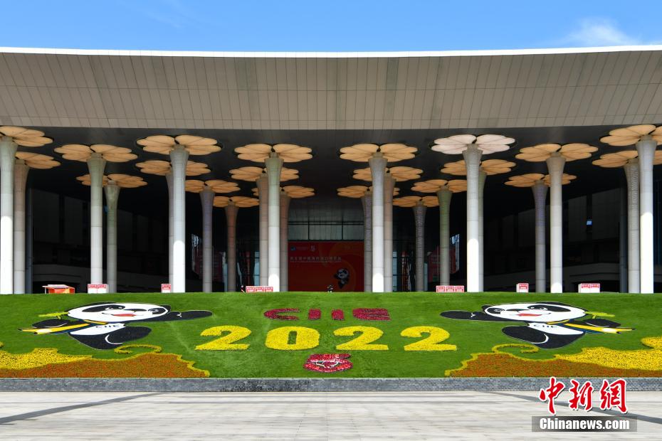第五届进博会场馆景观装饰全面定妆。 陈梦泽 摄