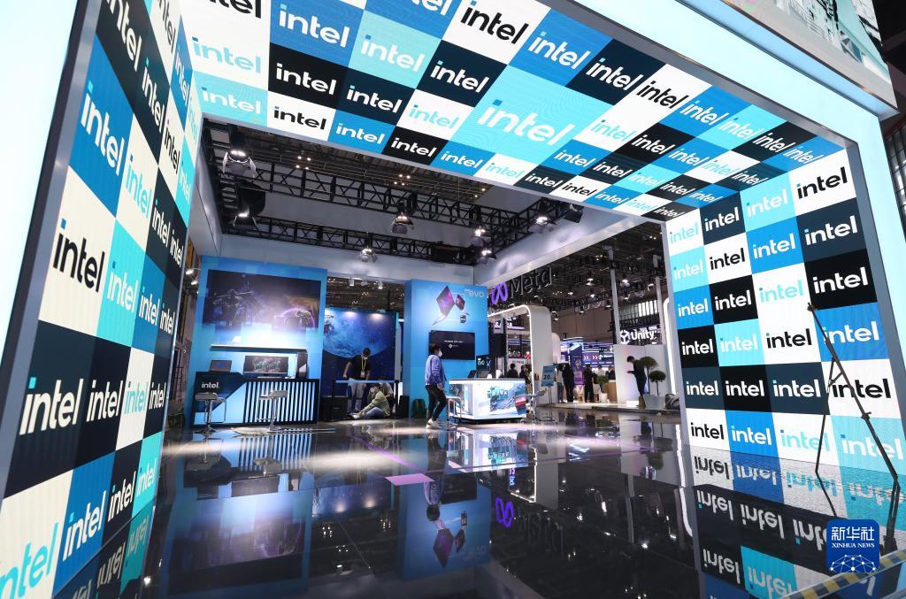 11月2日,工作人员在英特尔公司进博会展台进行布展调试。