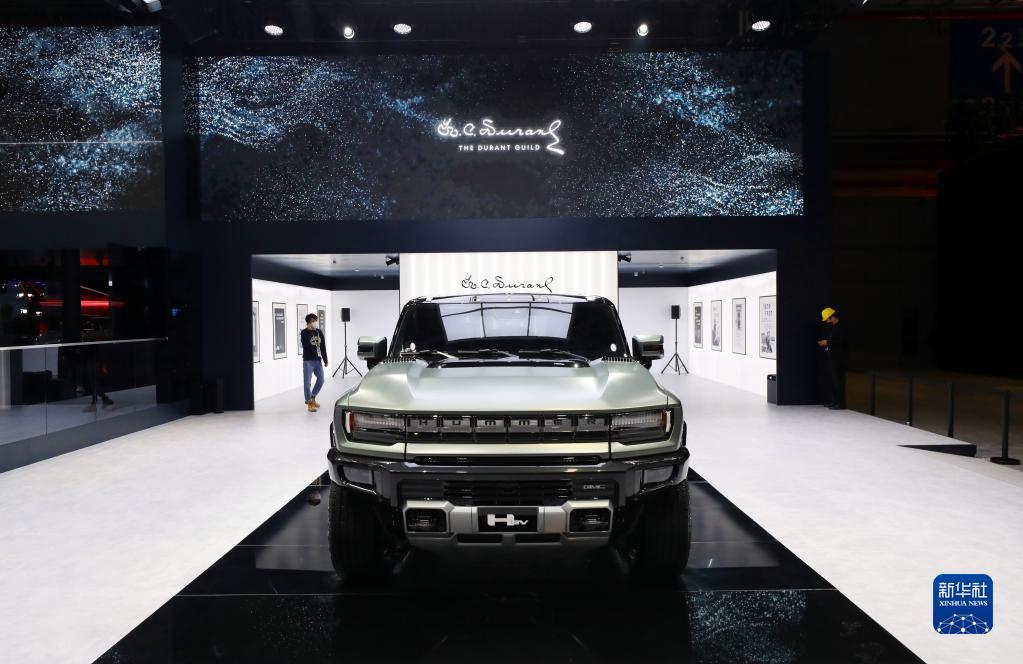 11月2日拍摄的通用汽车公司旗下道朗格品牌在进博会上展出的纯电悍马SUV车型。