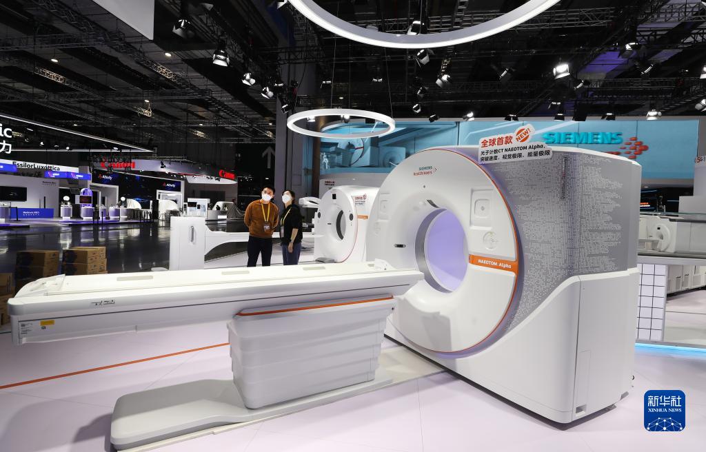 11月2日拍摄的德国西门子公司在进博会展台展出的大型医疗设备。