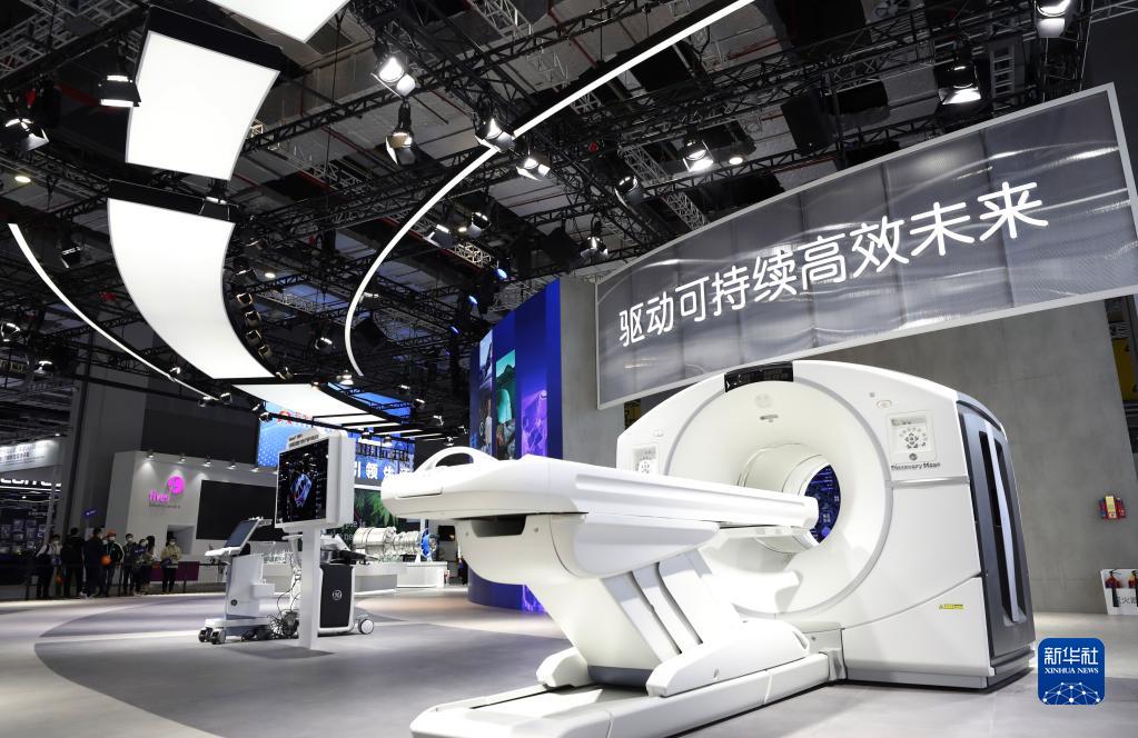 11月2日拍摄的美国GE公司在进博会展台展出的一台大型医疗设备。