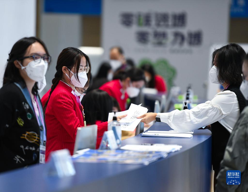 这是11月4日拍摄的第五届进博会新闻中心综合咨询台。
