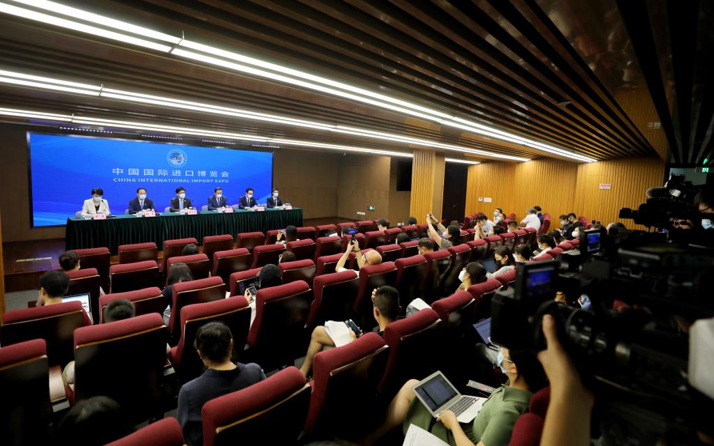 第五届中国国际进口博览会开幕倒计时100天新闻通气会在上海市政府新闻发布厅举行(2022年7月27日摄)。新华社记者 方喆摄