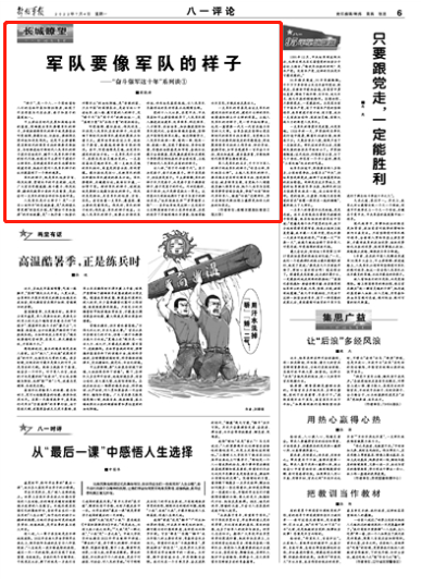军队的样子,既是军队性质宗旨、作风纪律、管理水平的外在投射,也是广大官兵思想道德、战斗能力、作风纪律、精神风貌等方面的内在彰显,是社会对一支军队的综合评价和总体印象。