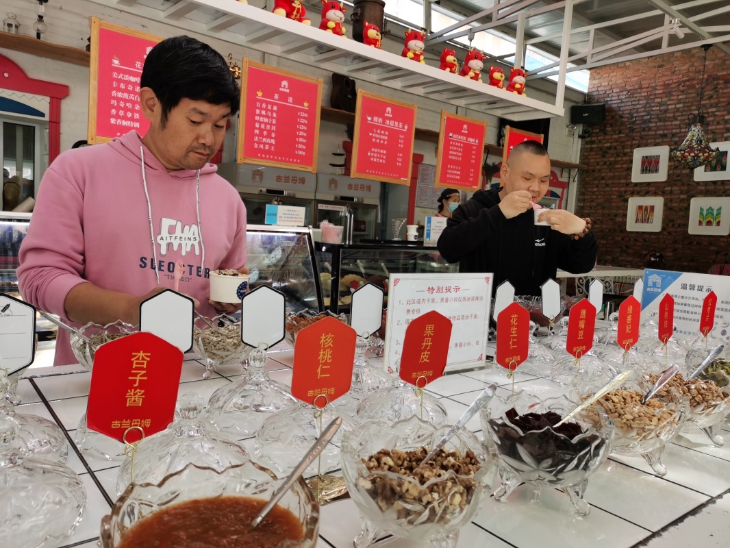 “慕名已久,终于尝到了,冰激凌很有特色,回去一定推荐朋友来吃。”广东游客刘俊杰抿了一口撒满果酱和果仁的冰激凌,满足地说。