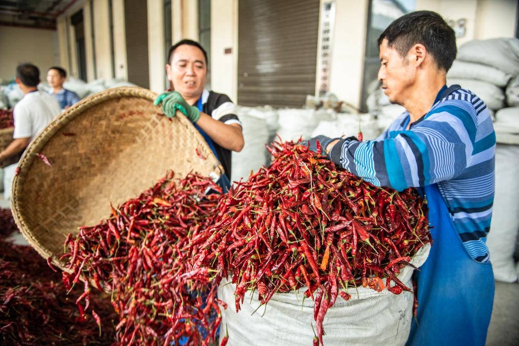 “中国辣椒城为大家创造了发展的平台。”吴应波是新舟镇最大的辣椒种植户,做辣椒生意十几年,在贵州、新疆、甘肃多地均有自己的种植基地,2020年成立了自己的公司和农民专业合作社,种出来的辣椒运往中国辣椒城进行加工,再销往全国各地。多年来,带动数千名群众增收。