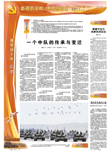 十年奋斗强军,十年创造非凡。像兰考中队一样,我军很多具有优良传统的部队,比如左权独立营、杜凤瑞中队、硬骨头六连、进藏先遣英雄连、平型关大战突击连、刘老庄连、黄继光英雄连等等,他们之所以能在改革重塑、转型发展中浴火重生、凤凰涅槃,无一不是坚持固本开新、守正创新的结果。