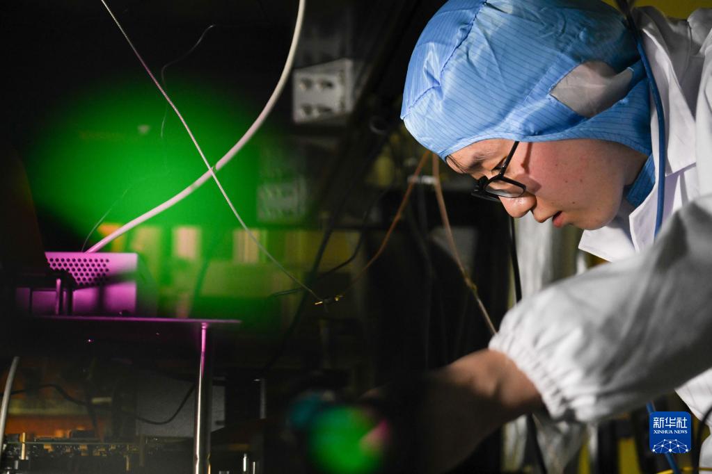 1月31日,在中国科学技术大学内,卢启航在中国科学院量子信息重点实验室做实验。新华社记者 张端 摄