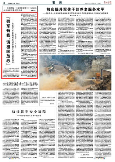 这样的奋斗情怀,是官兵们的共同心声。陆军防化学院学员李泽先说:“强国必须强军,军强才能国安。作为一名军校学员,我要刻苦学习军事知识,扎扎实实练好打仗技能。强军有我,请祖国放心!”