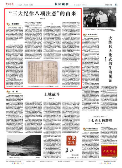 1931年9月,时任中共苏区中央局秘书长欧阳钦在关于《中央苏维埃区域报告》中写道:“红军与群众关系较好,红军有三大纪律八项注意……这三大纪律八项注意,红军中无论何人要知道并且非常熟悉,且能完全执行,这些在与群众关系上都是非常重要的。”由此可见,“三大纪律八项注意”作为红军军规,在红军指战员中广泛宣传并严格执行,从而赢得苏区群众的支持和拥护,保证了党和红军在群众中的凝聚力和号召力。