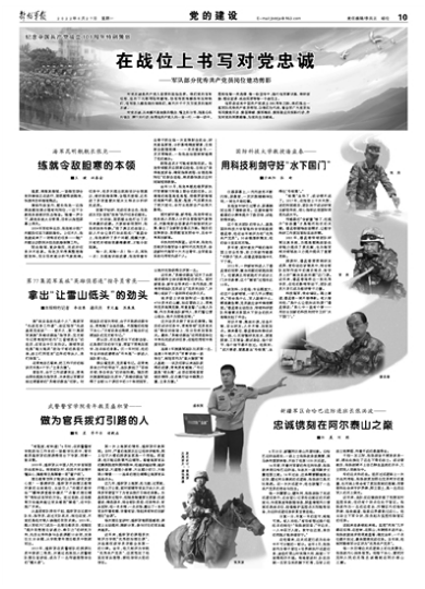 对党忠诚,从来都不是抽象的概念、嘴上的口号,而是心头的信念、脚下的行动,体现在共产党人的一言一行、一举一动中,落实在每一次选择、每一份坚守中,践行在军事训练、科研创新、理论宣讲、戍边巡逻等每一个战位上。