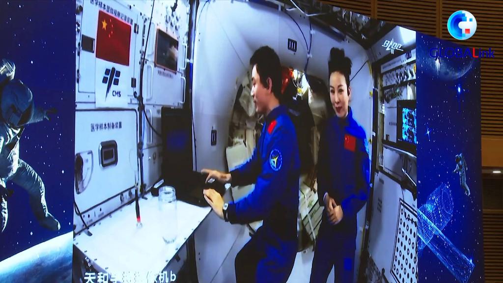 近一个小时的“课程”,空间站工作生活场景展示,微重力环境下细胞学实验、人体运动、液体表面张力等神奇现象,让课堂里不断响起惊呼声和热烈掌声。