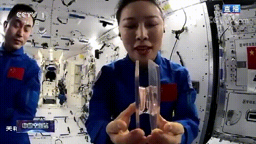 王亚平手持两片塑料板
